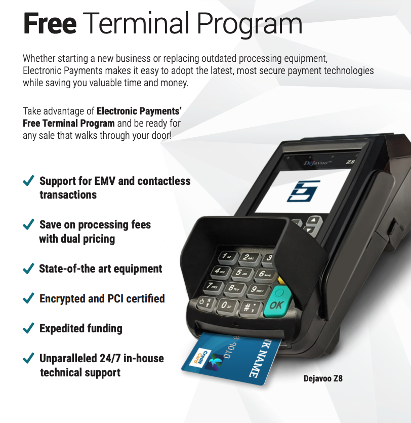 No Set-up and Conversion Fee – $ 0.0 – No Annual Fee – $0.0 FREE terminal (Deposit required)